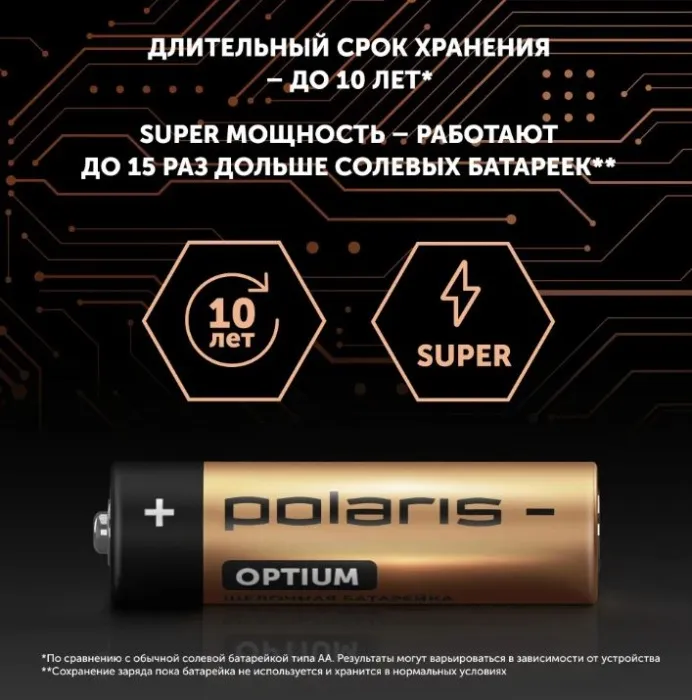 Алкалиновые батарейки обладают технологией SafePro, которая обеспечивает до 10 лет хранения в приборе без протечек при нормальной температуре, даже если приборы не используются долгое время.