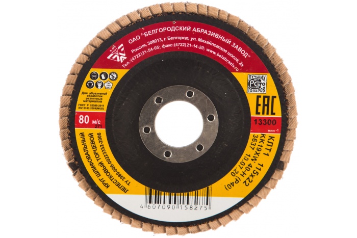 БАЗ 115 х 22,2 мм, P40, круг лепестковый торцевой, КЛТ 1, для УШМ, 36563-115-40 Применяется на УШМ для шлифовки и зачистки металла и дерева Для сохранения инструмента в рабочем состоянии, а так же предусмотренной гарантией завода изготовителя, наш интернет-магазин (zubr36) рекомендует использовать БАЗ 115 х 22,2 мм, P40, круг лепестковый торцевой, КЛТ 1, для УШМ, 36563-115-40 строго по назначению.